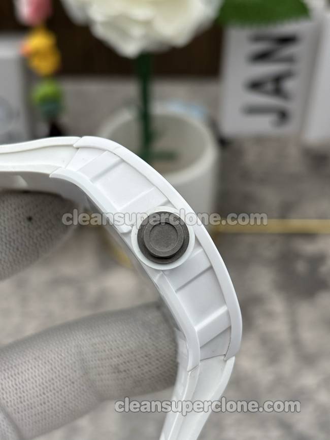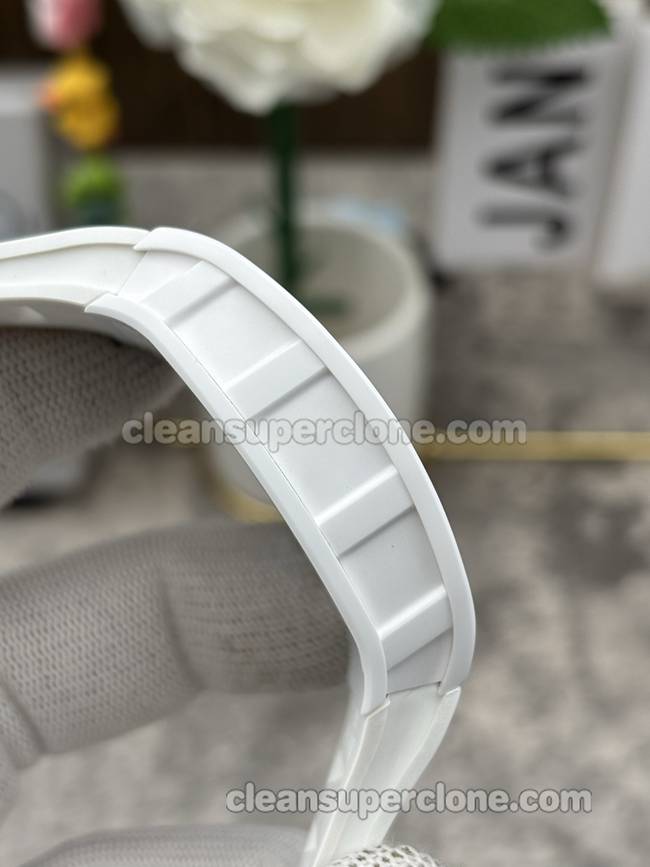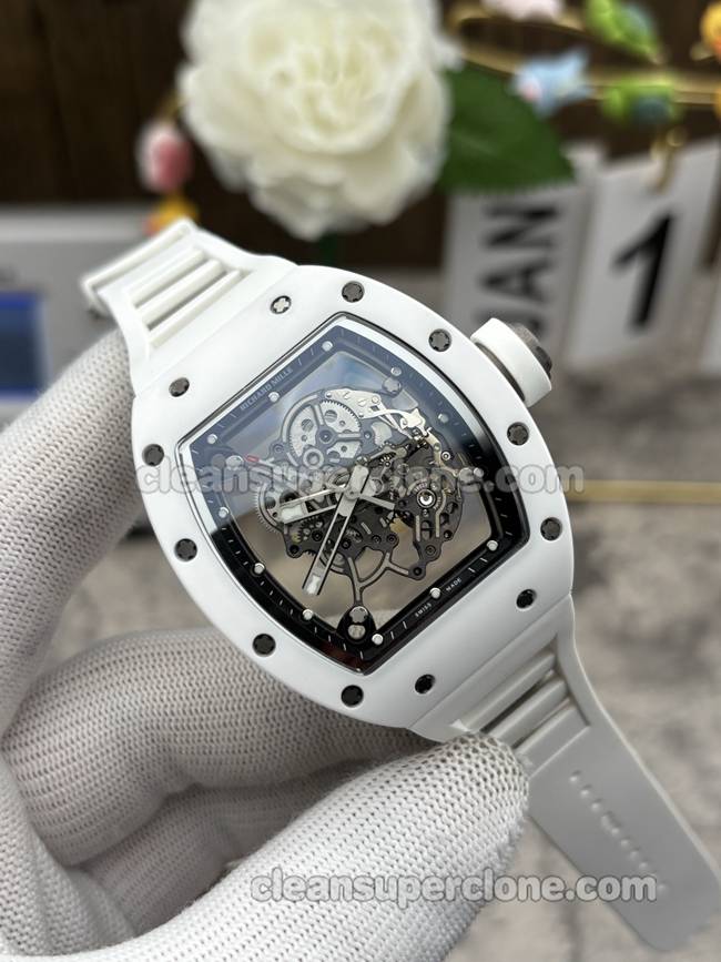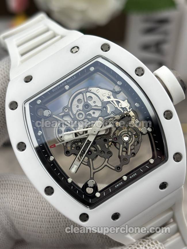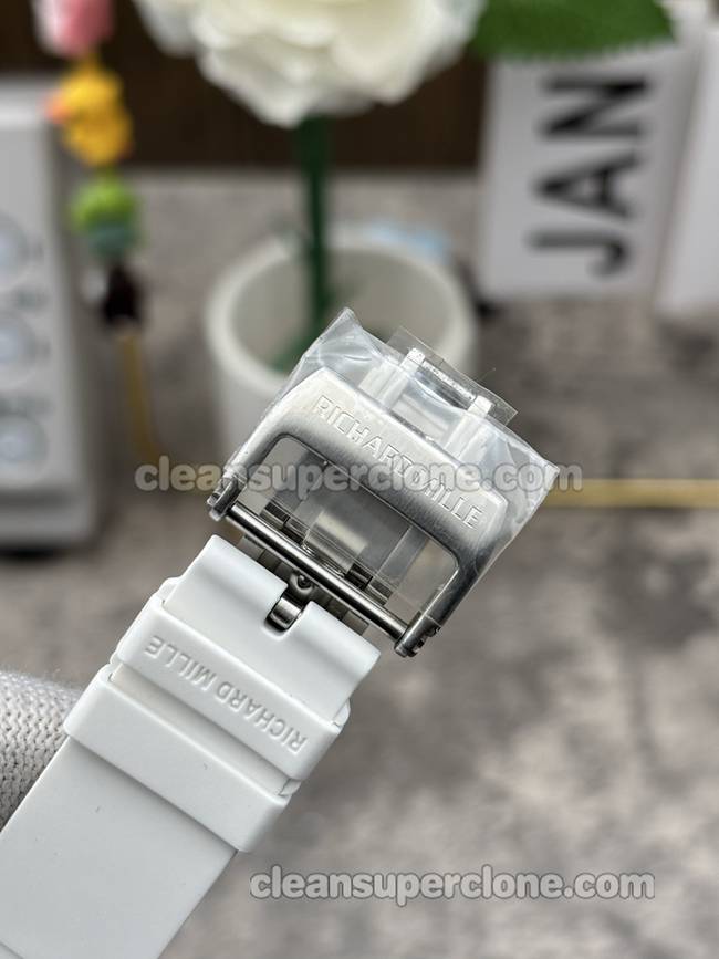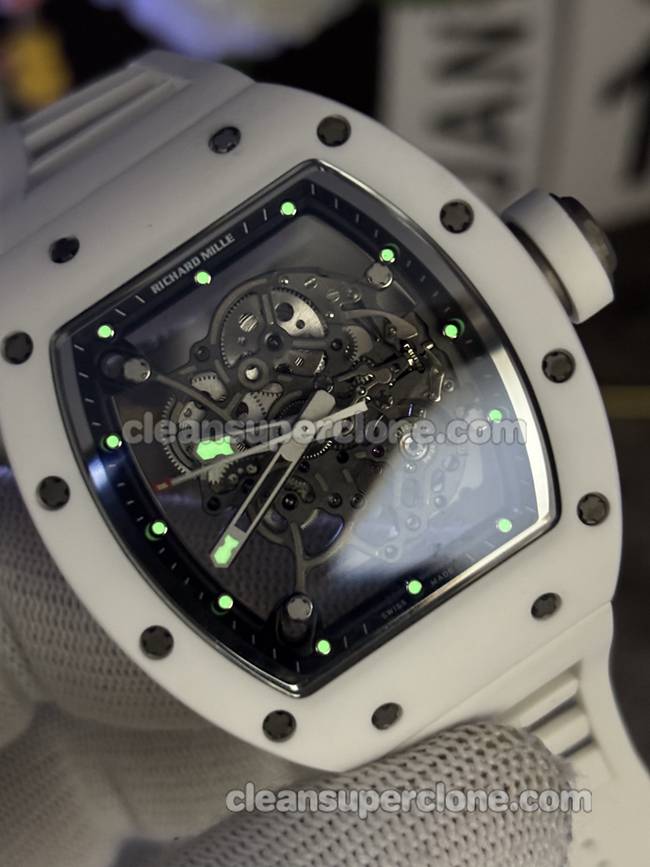 The strap typically pairs with white rubber material. Undoubtedly, this further enhances the overall sports style. In summary, this replica watch merges advanced materials with skeleton aesthetics. Ultimately, it successfully interprets the disruptive spirit of the Richard Mille brand.