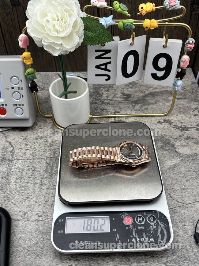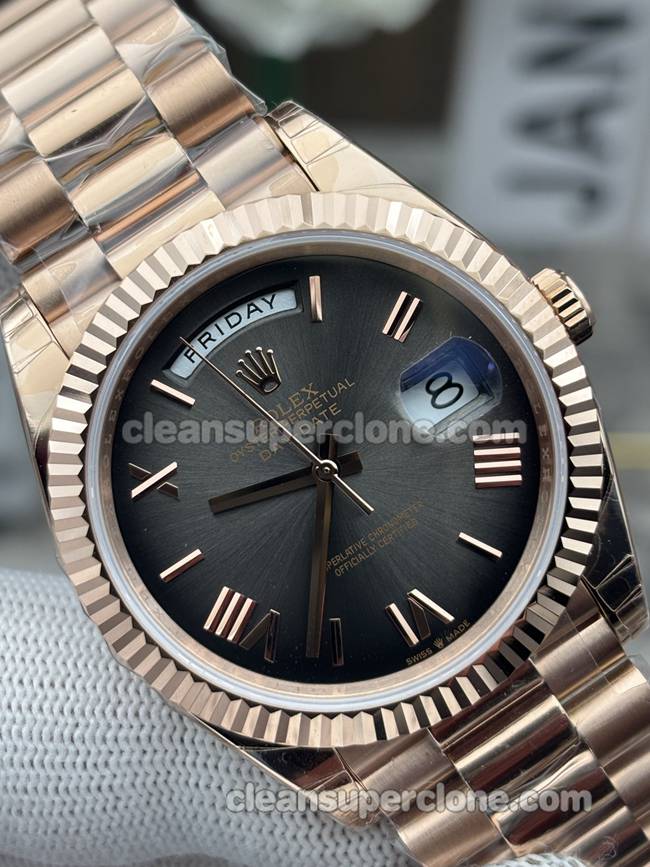 This GS factory Rolex watch perfectly blends classic design with modern craftsmanship. Specifically, the Day-Date model m228235-0055 features a 40mm case. Furthermore, the case is made from precious 18K Everose gold.