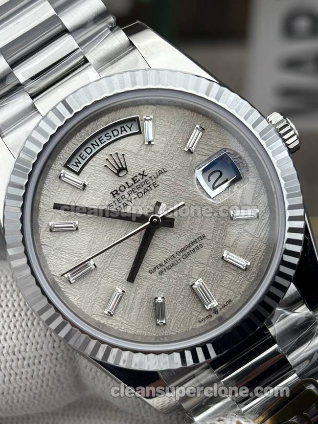 The replica watch 228239 immediately captivates with its genuine meteorite dial. Consequently, every piece displays a uniquely stunning natural pattern. Furthermore, the 40mm case offers a substantial yet elegant presence. Therefore, it commands attention without being overly bulky. The design faithfully replicates the original Rolex Day-Date aesthetics. Additionally, the premium finishing demonstrates exceptional attention to detail. The case construction feels incredibly solid and well-engineered. As a result, it provides a satisfying weight on the wrist.