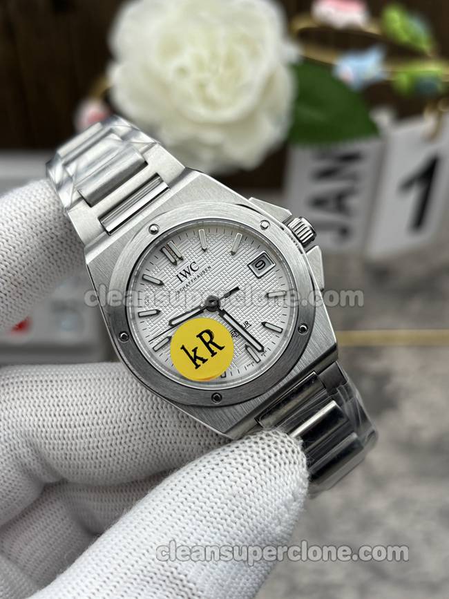 The KR factory IWC Ingenieur watch features a 35mm stainless steel case. Firstly, its silvery-white dial presents a minimalist industrial aesthetic. Meanwhile, baton hour markers on the dial ensure clear readability. Additionally, the date window at three o’clock is highly practical. The sapphire crystal, furthermore, provides comprehensive protection for the dial.
