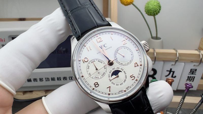 This Replica watch Portugieser showcases classic IWC aesthetics. Furthermore, its 42.4mm case maintains perfect proportions. Moreover, the silver-white dial displays exceptional elegance. Additionally, multiple complications create visual harmony. Consequently, this timepiece represents horological sophistication perfectly. This Replica watch Portugieser embodies timeless refinement.
