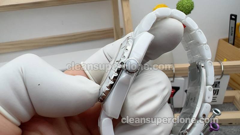 HT Factory uses high-density hardened ceramic for this watch. This material is identical to the genuine version. Moreover, it is lightweight, scratch-resistant, and hypoallergenic. Its color will never fade over time. The jade-like appearance closely matches the original. This clearly differs from other versions’ yellowish tones.