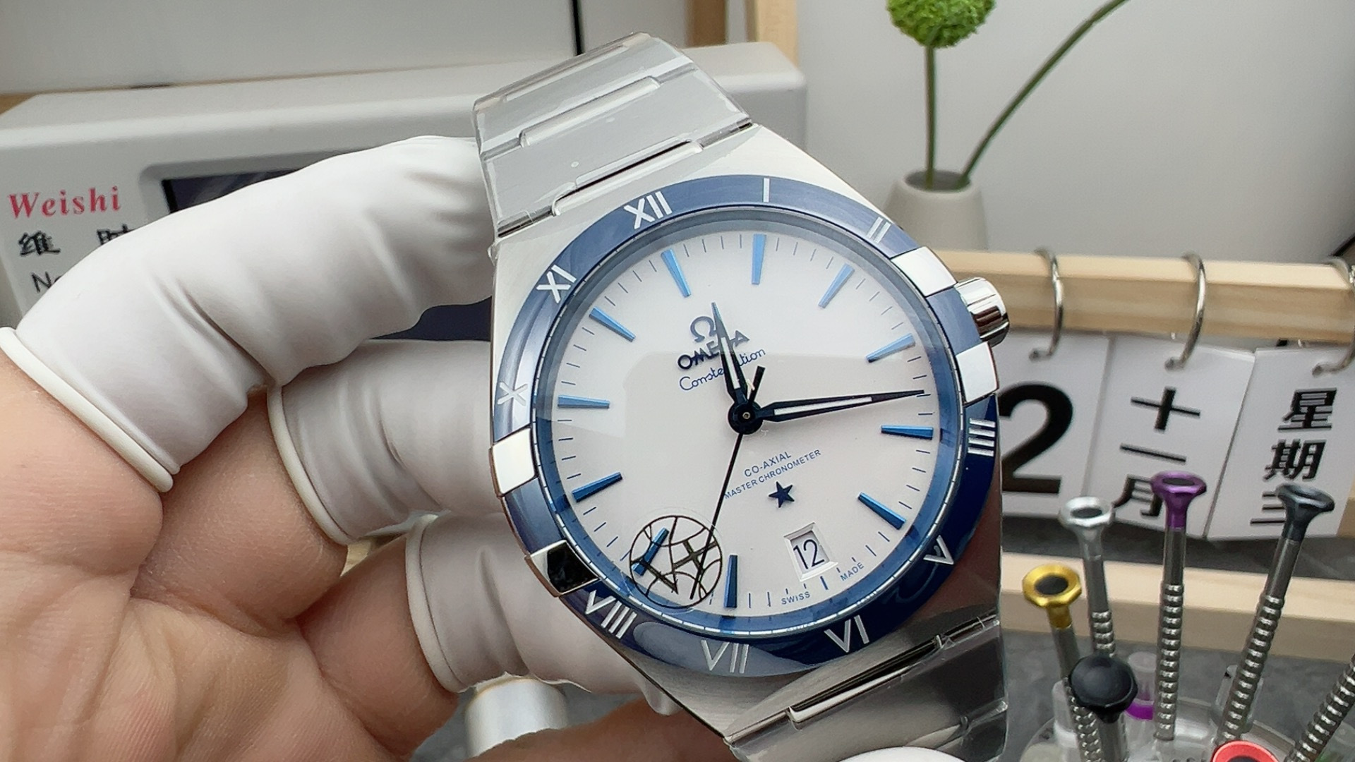 In conclusion, this V+ Factory’s super clone watch Omega Constellation 131.33.41.21.04.001, successfully blends the classic elegance of the Constellation series with a futuristic style through a white ceramic case, a blue and white contrasting color design, and a highly challenging Grand Feu enamel bezel. It represents the top level in the current “super cloning” field. Its significance has transcended simple imitation and is a profound interpretation and recreation of high-end watchmaking craftsmanship. For watch enthusiasts, it is undoubtedly a stunning piece that combines outstanding craftsmanship with modern aesthetics, and is worth in-depth appreciation and collection.