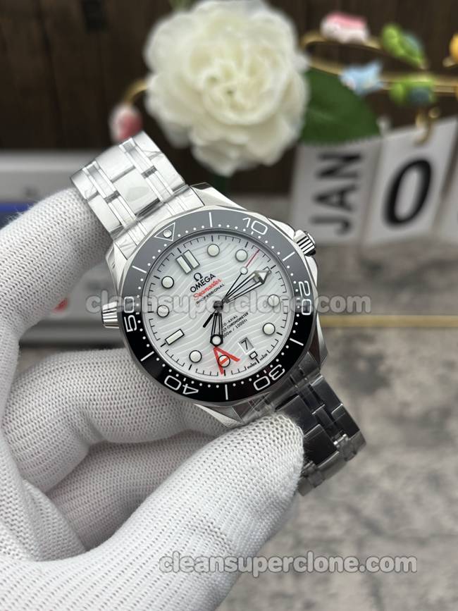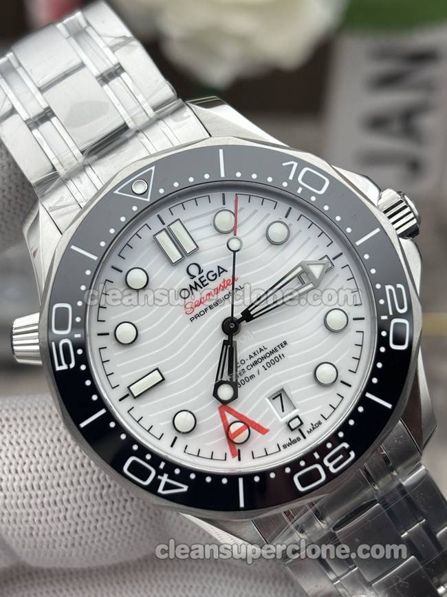 The VS factory presents this Omega Seamaster watch, perfectly blending classic design with modern technology. Firstly, model 210.30.42.20.04.001 features a 42mm stainless steel case. Meanwhile, the white ceramic dial exhibits a unique texture.